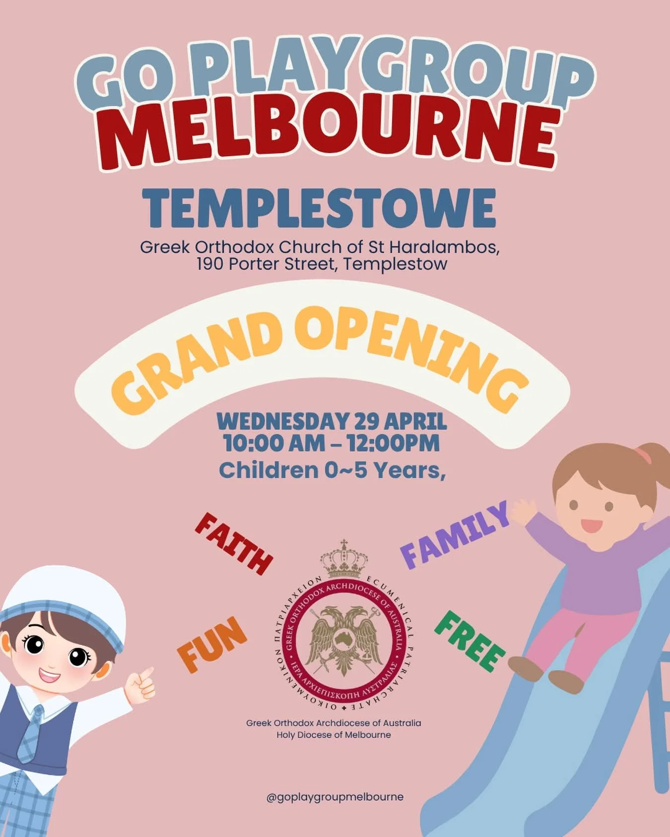 GO playgroup Melbourne operates under the spiritual guidance of His Grace Bishop Kyriakos of Melbourne.